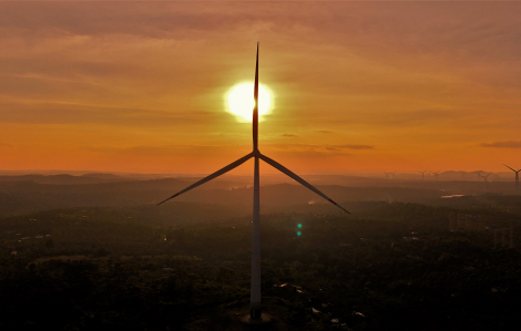 Khoảnh khắc hoàng hôn buông xuống, cánh đồng điện gió Ea Nam bỗng trở thành điểm dừng chân thú vị giữa không gian rộng lớn.