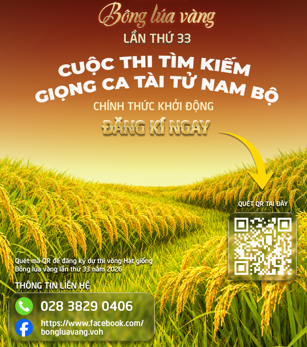 PNO - Đài phát thanh và truyền hình TPHCM (HTV) chính thức khởi động cuộc thi "Bông lúa vàng 2026" lần thứ 33. Cuộc thi dành cho công dân Việt Nam từ 16 đến 50 tuổi yêu thích nghệ thuật đờn ca tài tử - cải lương sẽ trở lại với diện mạo hoàn toàn mới.