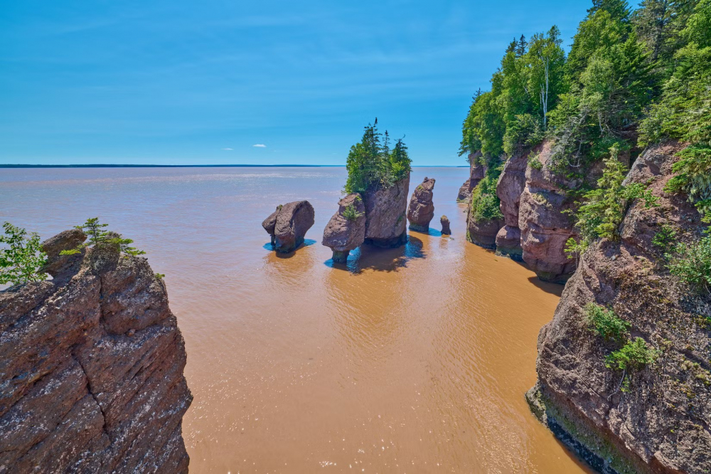 Nổi tiếng với thủy triều cao nhất thế giới, Vịnh Fundy hùng vĩ là thiên đường của các chuyến du ngoạn trên mặt nước. 2 lần mỗi ngày, khoảng 100 tỉ tấn nước tràn vào và rút ra khỏi vịnh. Du khách có thể trải nghiệm hiện tượng này, chiêm ngưỡng thác nước chảy ngược dòng thay đổi theo thủy triều, chèo thuyền kayak ra vịnh, khám phá các hang động trên biển khi thủy triều xuống, tham gia tour ngắm cá voi. Nơi tuyệt vời nhất để trải nghiệm Vịnh Fundy là Công viên tỉnh bang Hopewell Rocks, nơi bạn có thể đi bộ quanh những khối đá biển khổng lồ khi thủy triều xuống, rồi ngắm nhìn thủy triều dâng lên xung quanh chúng.