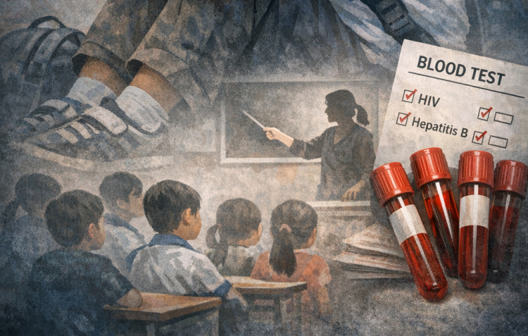 Đưa 5 học sinh bị cô giáo phạt tự đâm kim tiêm vào tay đi xét nghiệm máu