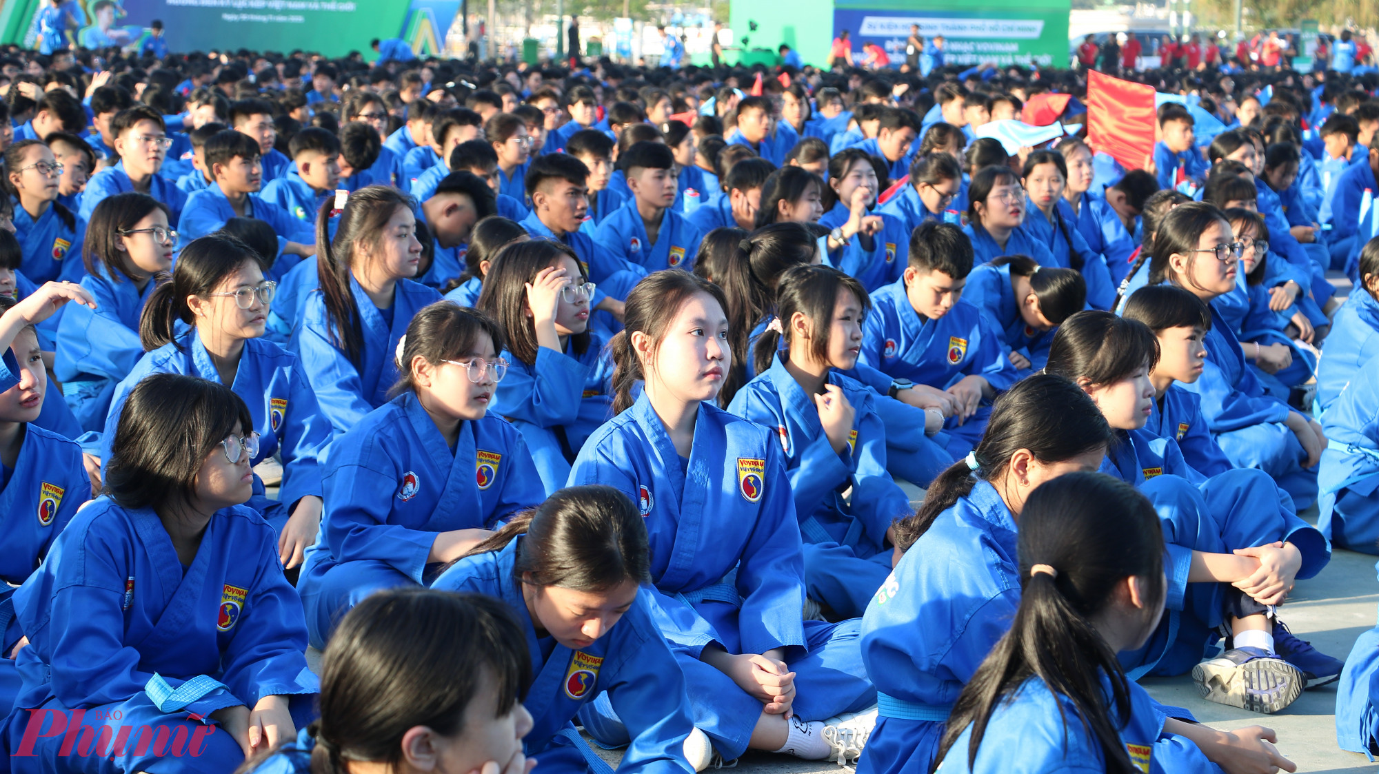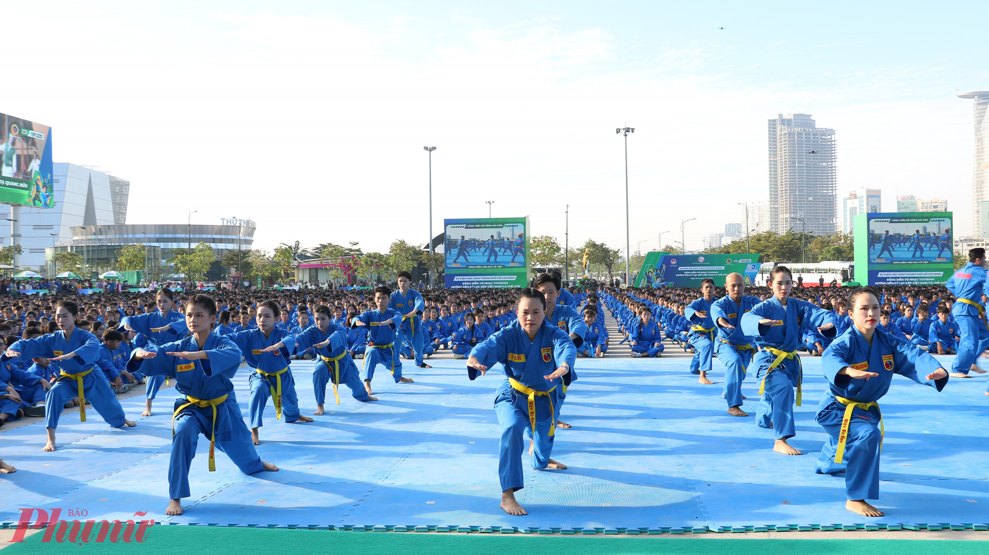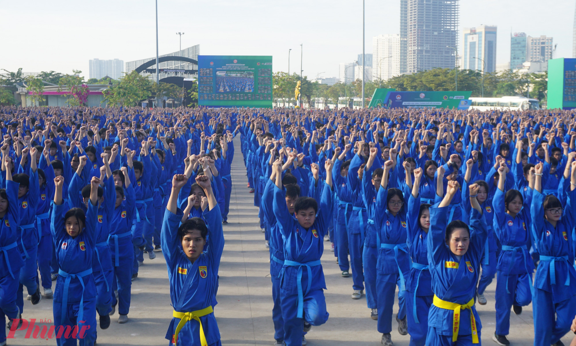 PNO - Sáng 30/11, 60.000 học sinh TPHCM đã đồng diễn võ nhạc Vovinam nhằm xác lập kỷ lục kép Việt Nam và thế giới.