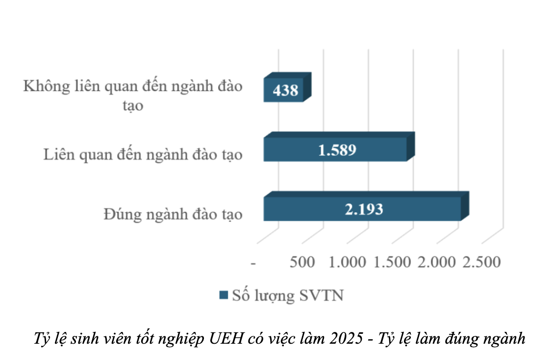 PNO - Khảo sát năm 2025 của Đại học Kinh tế TPHCM cho thấy 97% sinh viên có việc làm trong vòng 1 năm sau tốt nghiệp.