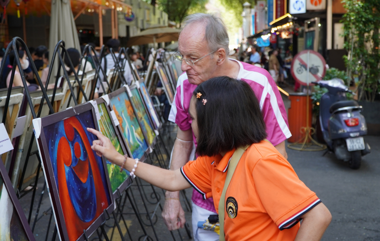 PNO - Sáng 14/12, tại Đường sách TP Hồ Chí Minh , Hội Mỹ thuật TP Hồ Chí Minh phối hợp cùng Câu lạc bộ Mekong Art tổ chức khai mạc triển lãm tranh với chủ đề “Âm thanh sắc màu”. Triển lãm giới thiệu các tác phẩm hội họa của học viên lớp Âm Thanh Hội Họa – lớp học dành cho người khuyết tật điếc câm.