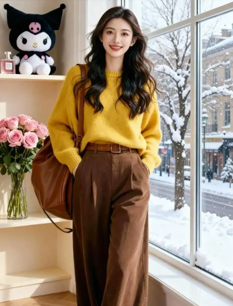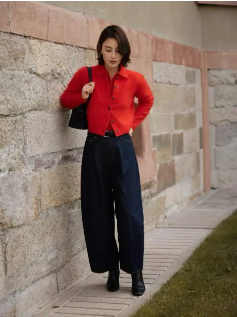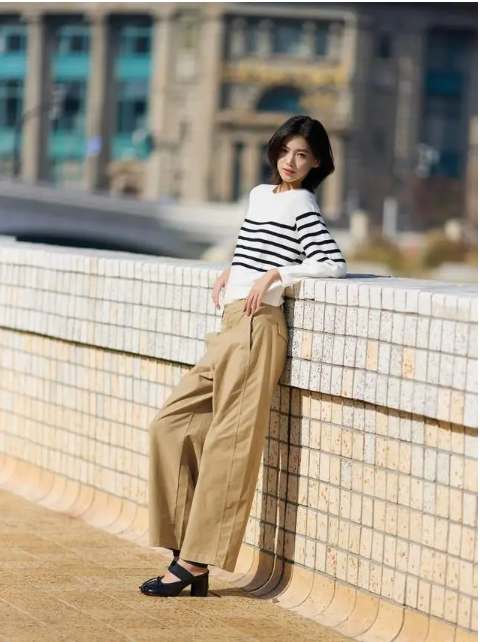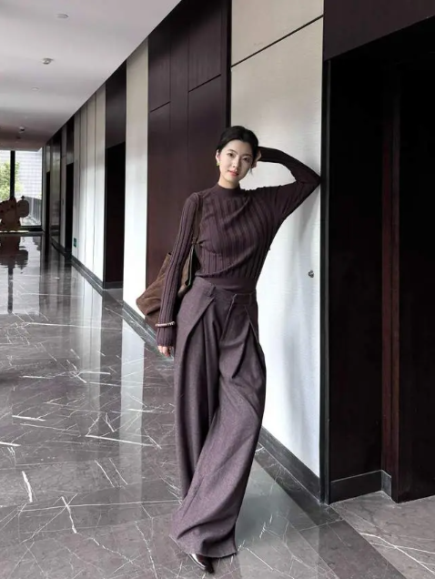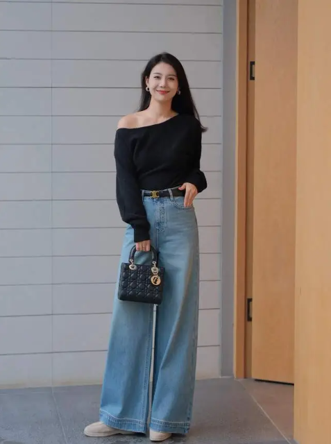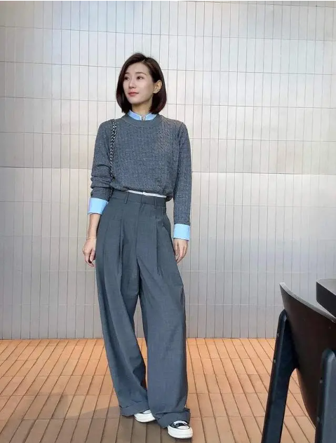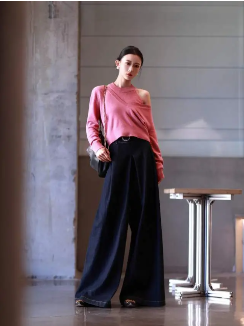 PNO - Áo len kết hợp cùng quần ống rộng được xem là công thức mặc đẹp đơn giản nhưng hiệu quả, phù hợp với nhiều dáng người và hoàn cảnh.