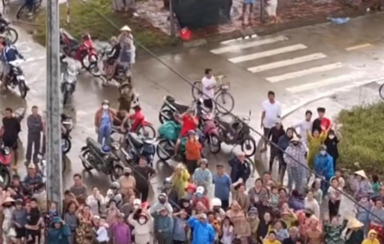 Người dân xã Hoà Thịnh, Phú Yên (trước đây), vẫy tay chào đoàn trực thăng đến cứu trợ lương thực.