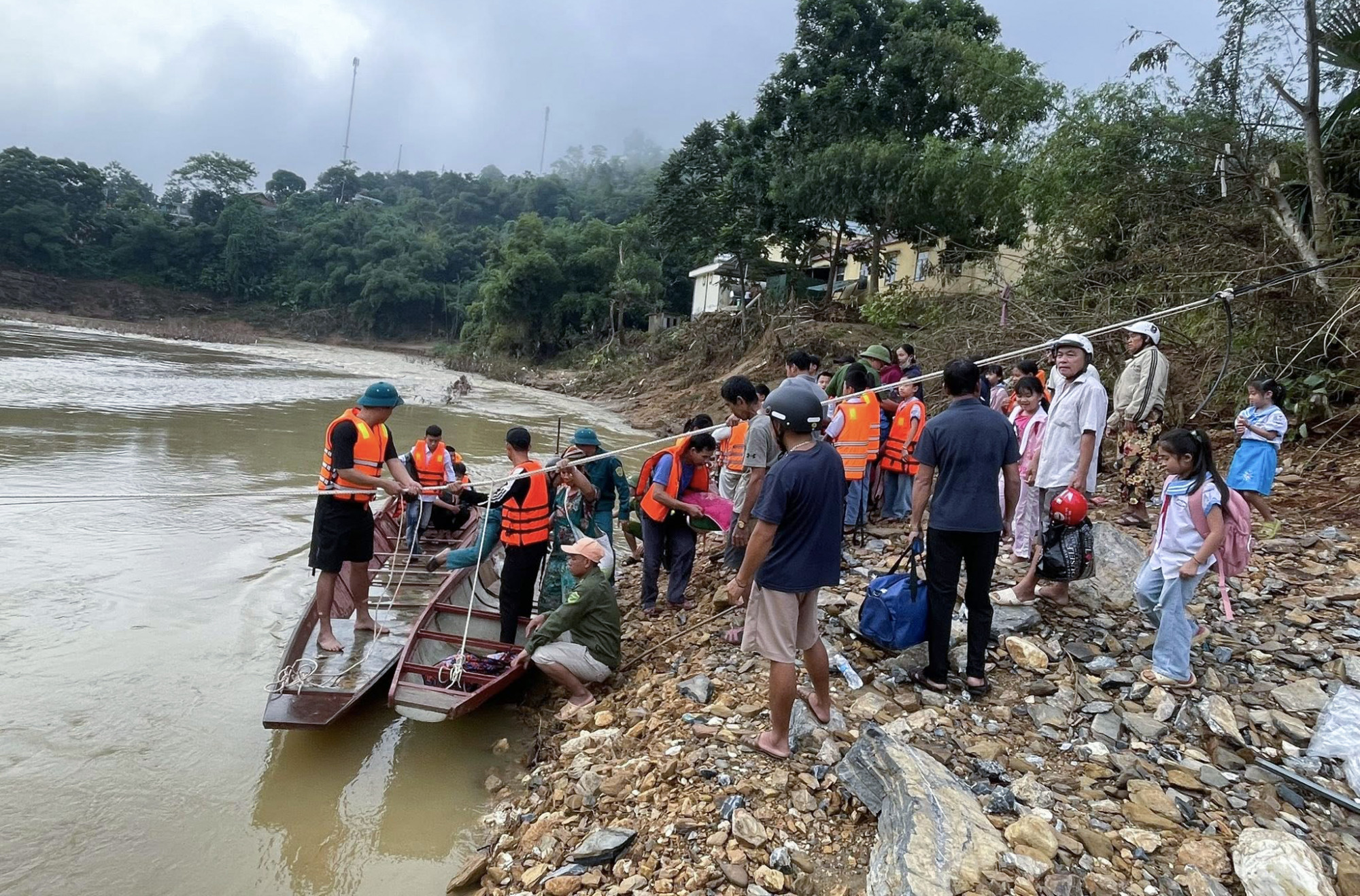 PNO - Hàng loạt cây cầu bị lũ ống tràn về cuốn trôi, chính quyền xã vùng cao Nghệ An phải dùng ròng rọc và thuyền chở hàng trăm học sinh, giáo viên vượt suối đến trường.