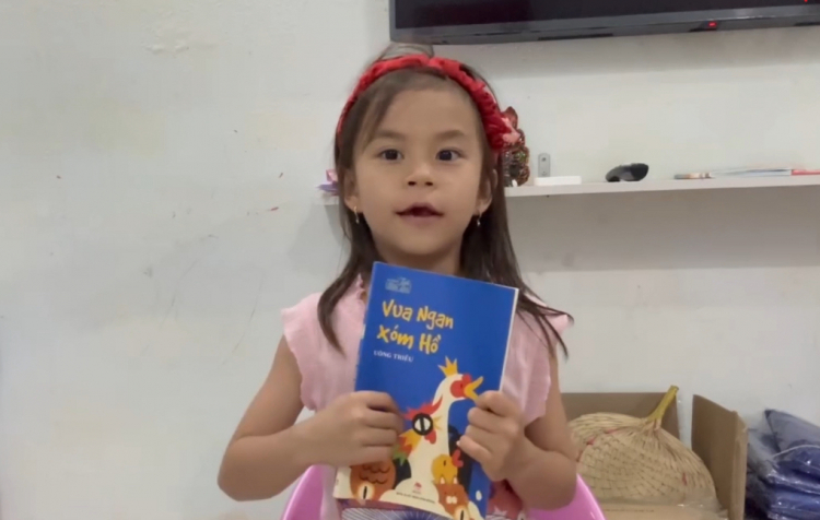 Thí sinh Lương Hà Duyên (10 tuổi, TPHCM) giới thiệu truyện 'Quốc vương và bùn đất' trong sách ' 365 truyện kể trước giờ đi ngủ - Nhà xuất bản thế giới'.