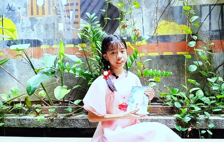 PNO - PNO - Hồ Minh Châu - học sinh lớp Sáu, ở xã Nhà Bè, TPHCM - dự vòng bán kết cuộc thi Kể chuyện sách thiếu nhi bằng đoạn video giới thiệu về cuốn sách "Xứ sở sương mù".