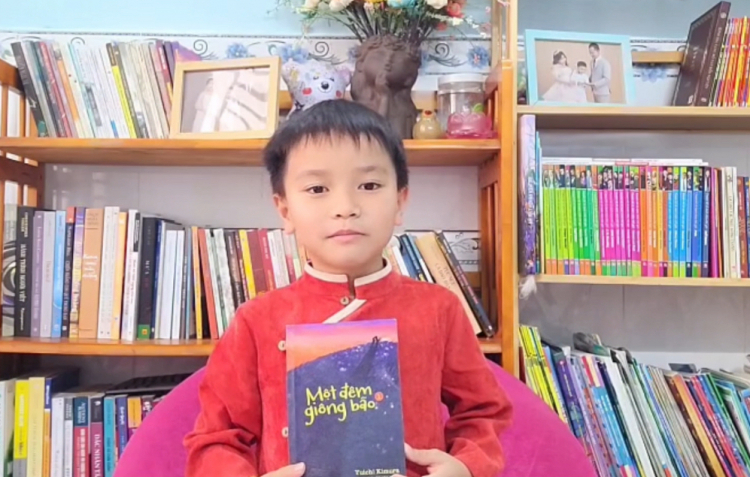 PNO - Thí sinh Huỳnh Phúc An (8 tuổi, xã Nhà Bè, TPHCM) giới thiệu sách ‘Một đêm giông bão’ của tác giả Yuichi Kimura (NXB) Kim Đồng.