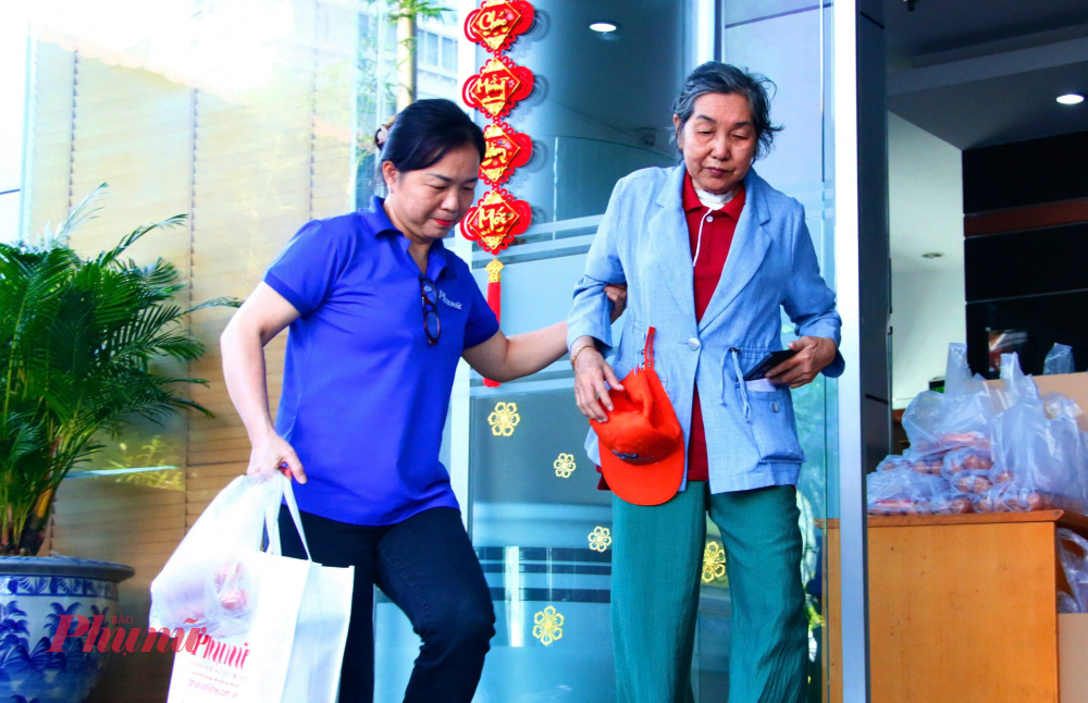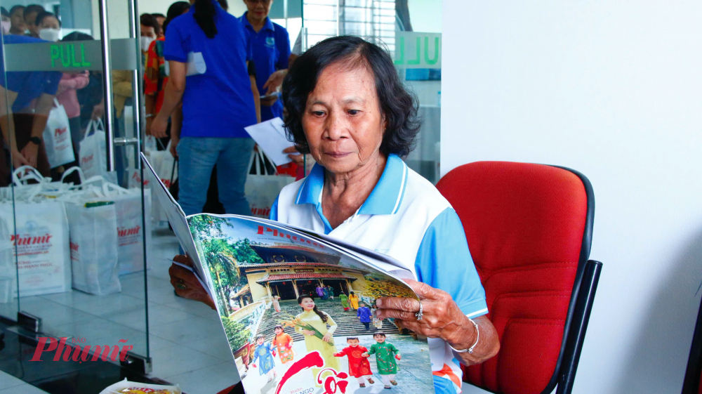 Chính vì vậy, nghe tin được Báo Phụ nữ TPHCM mời đến nhận quà tết, bà Cúc vô cùng phấn khởi. Dù phải di chuyển hơn 30km đến tòa soạn báo, người mệt lã nhưng suốt buổi, bà luôn nở nụ cười trên môi.