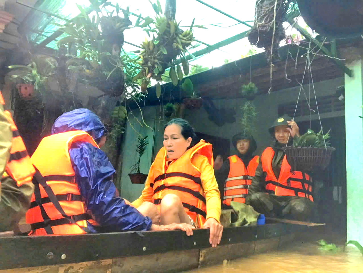 Tình trạng ngập lũ sâu khiến cả TP Huế như chìm trong biển nước, gây rất nhiều khó khăn cho việc di chuyển, đi lại và công tác hỗ trợ người dân.