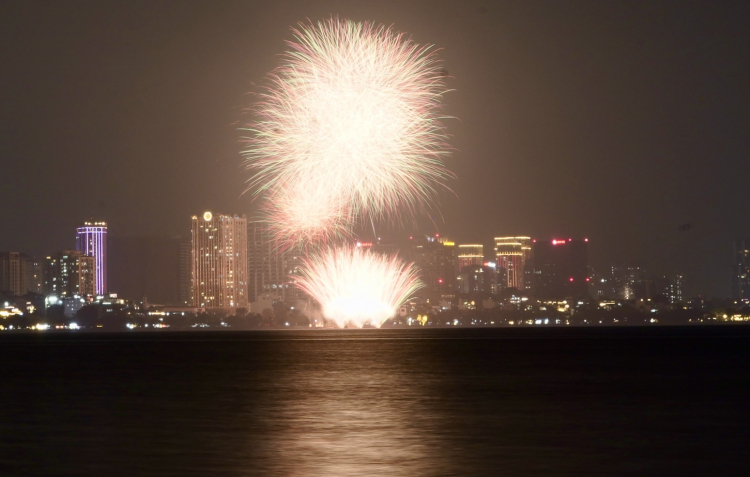 PNO - Đúng thời khắc giao thừa, 33 điểm bắn pháo hoa đã làm bầu trời Hà Nội rực sáng trong suốt 15 phút.
