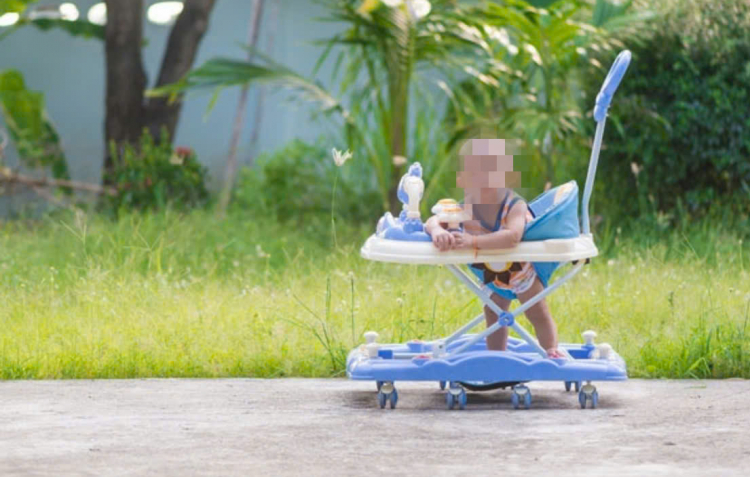 PNO - Trong lúc ngồi xe tròn tập đi, bé trai 8 tháng tuổi bị té đập đầu xuống nền đất cứng, sau đó li bì, bỏ bú...