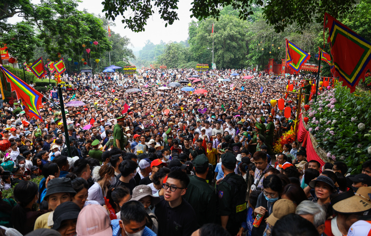PNO - Sáng 26/4 (tức 10/3 Âm lịch), hàng ngàn người đổ về khu di tích lịch sử Đền Hùng ở xã Hy Cương thuộc tỉnh Phú Thọ để dâng hương tưởng nhớ các Vua Hùng.