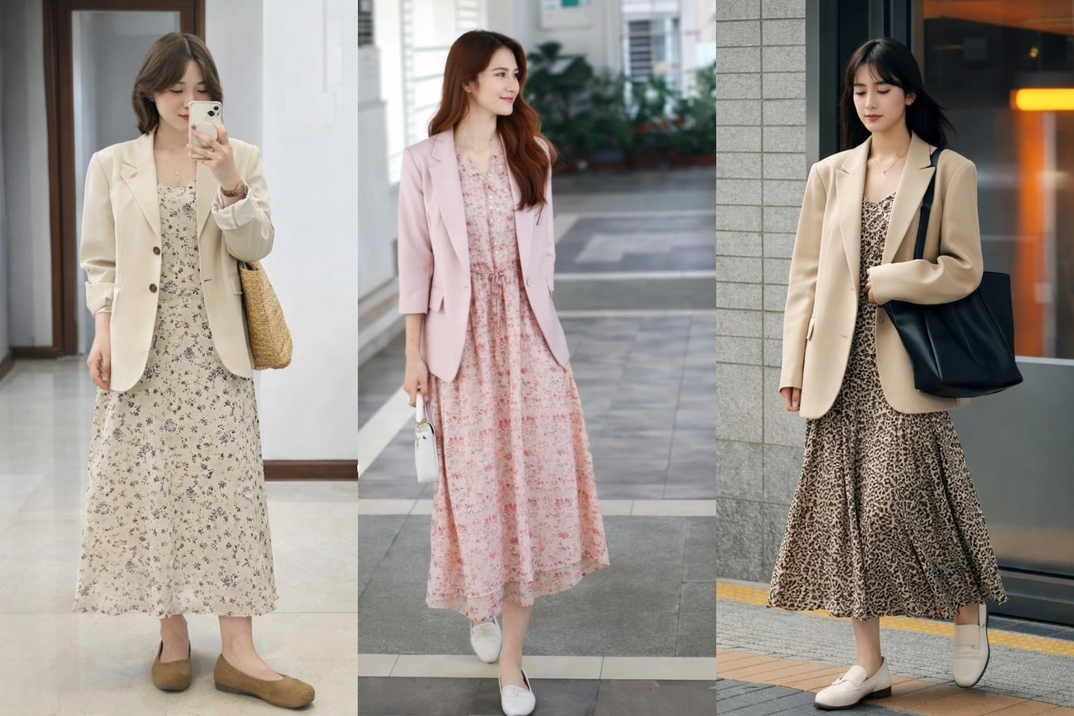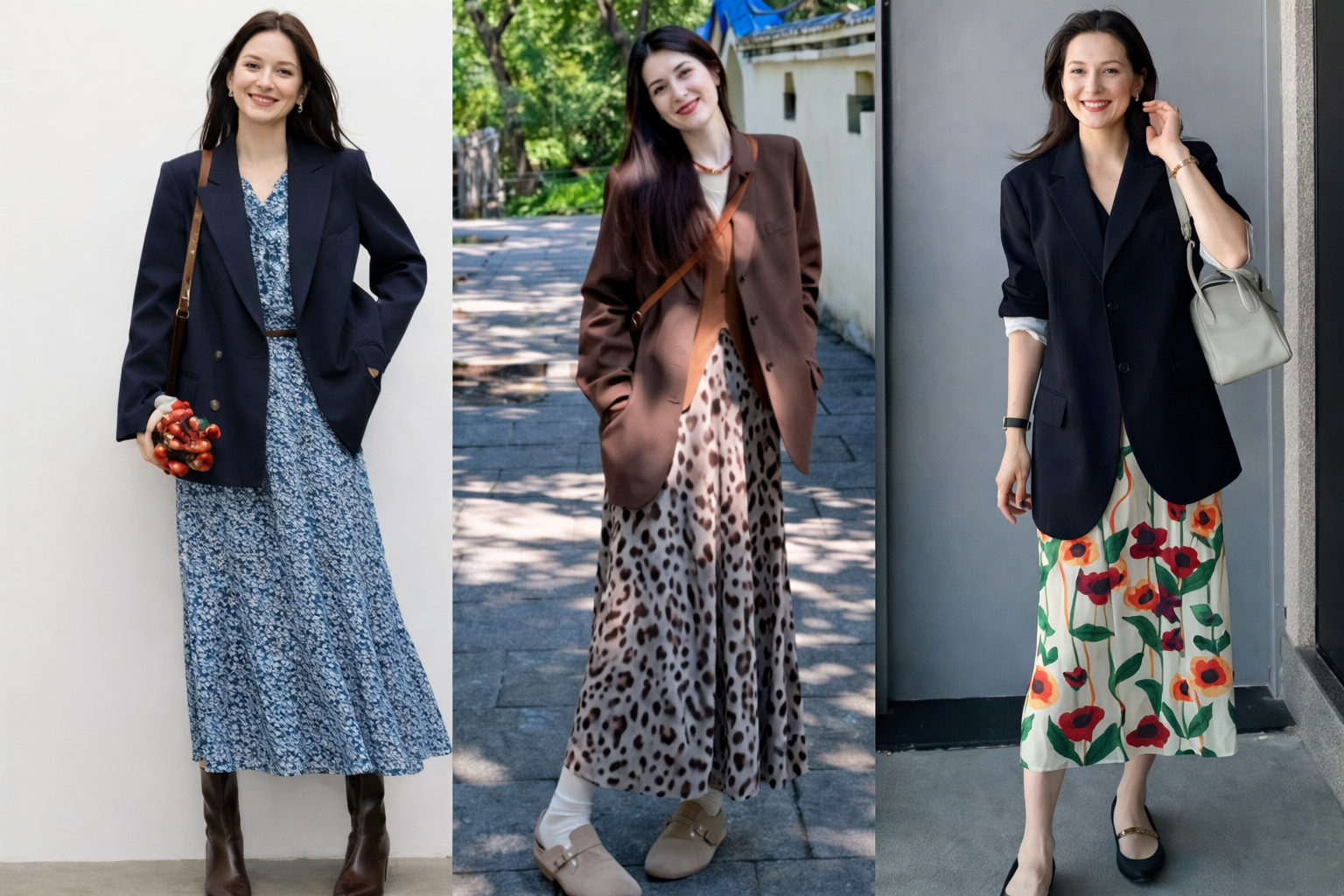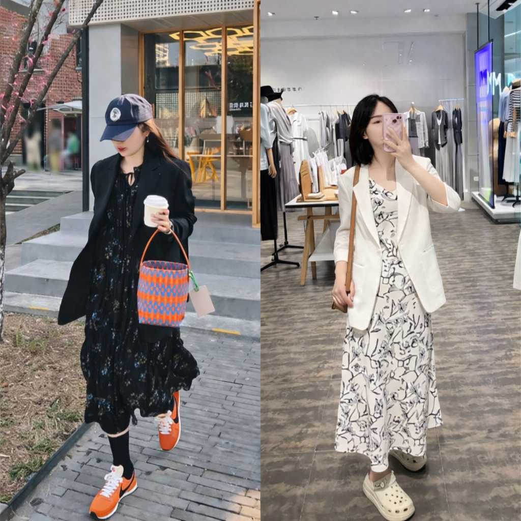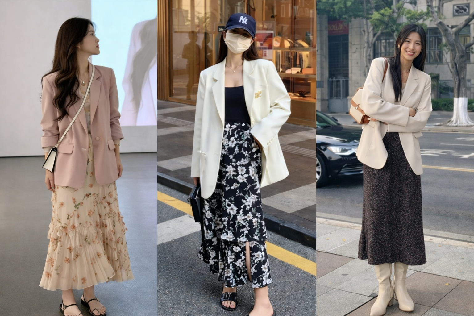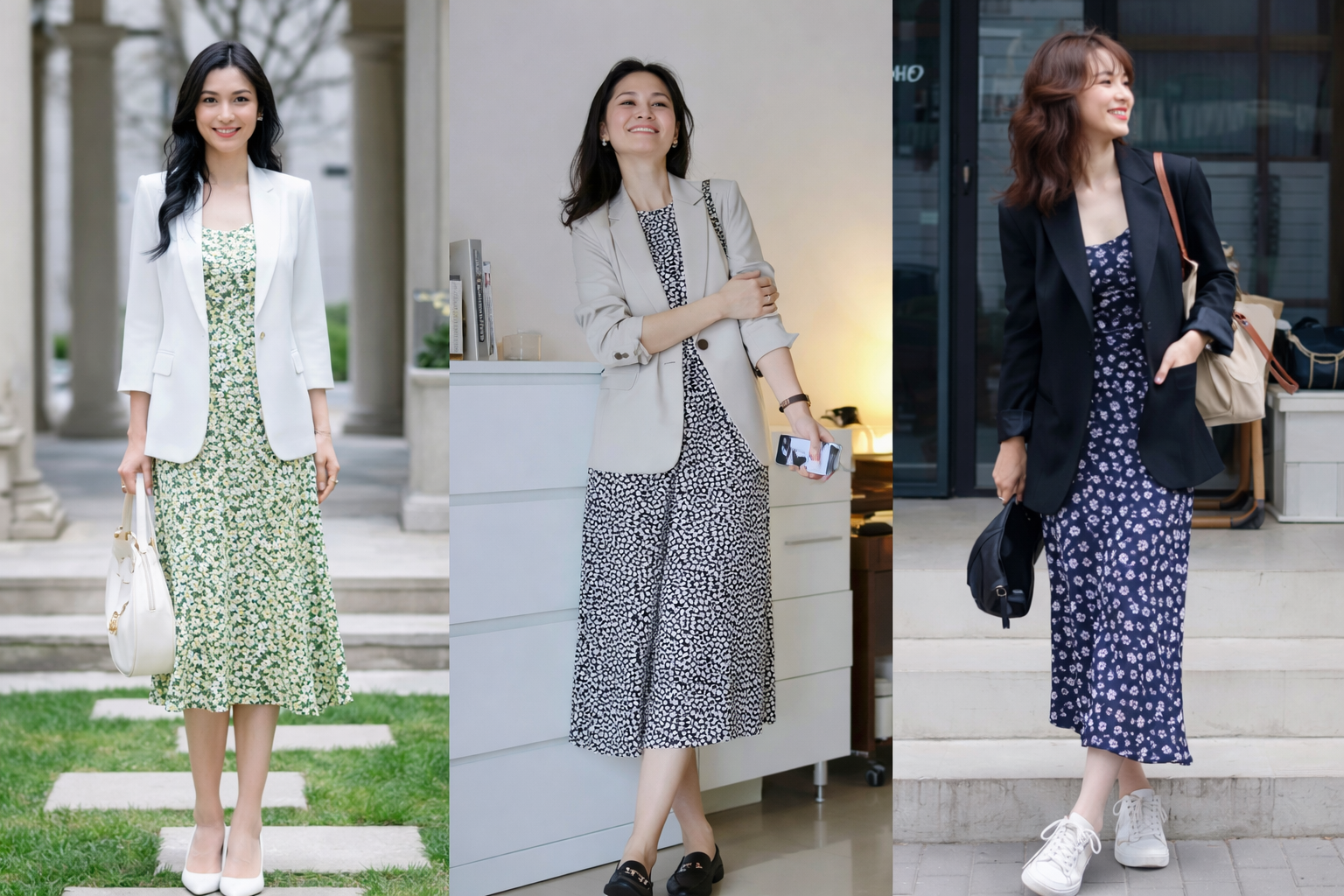 PNO - Mềm mại, nữ tính nhưng không kém phần thanh lịch, váy hoa khi kết hợp cùng blazer đang trở thành công thức được nhiều tín đồ mặc đẹp lựa chọn.