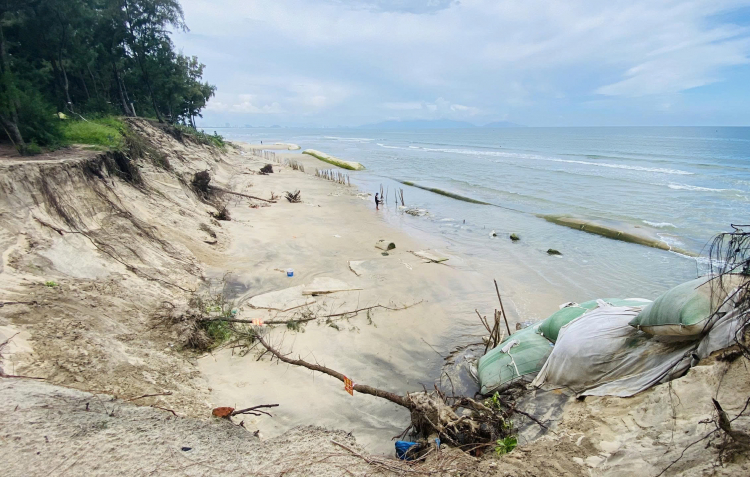 PNO - Những ngày qua, bờ biển Hội An (Đà Nẵng) tiếp tục sạt lở sâu vào đất liền, kéo dài hàng chục mét lên phía bắc.