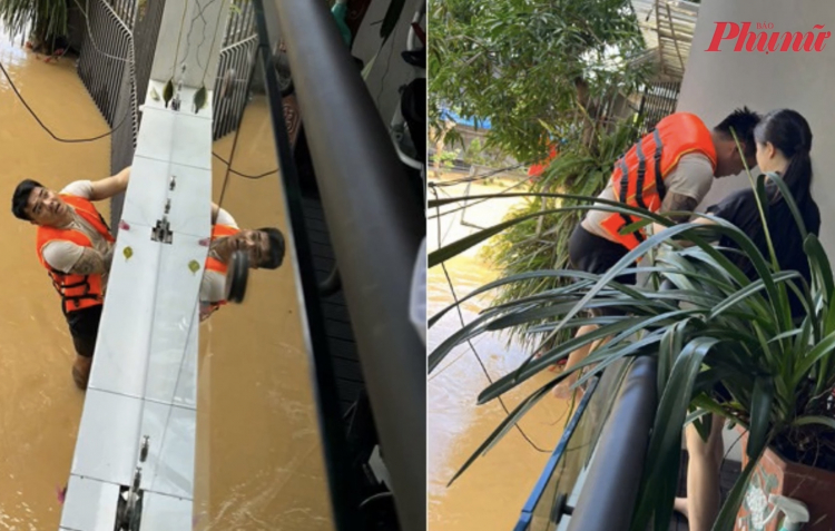 Khoảnh khắc nghe chồng gọi cổng, người vợ vừa mừng vừa xúc động. Trước đó, chồng chị đã có 1 đêm mắc kẹt vì nước lũ.