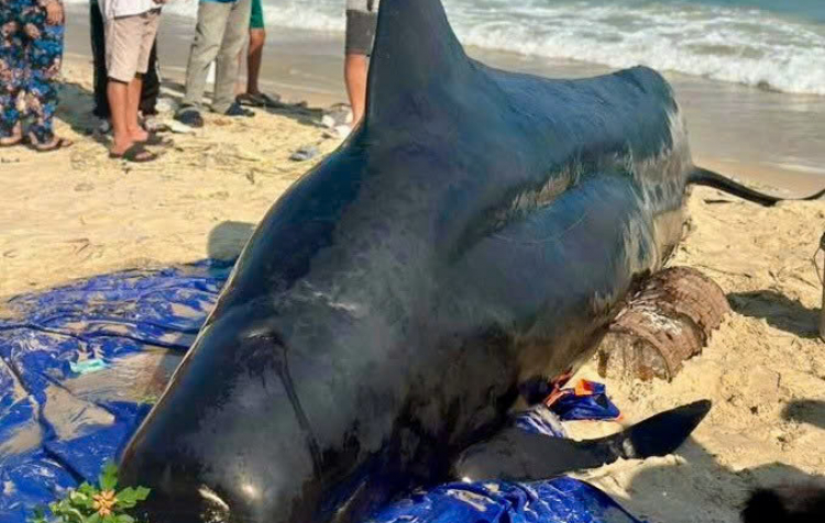 Cá voi nặng khoảng 2 tấn dạt vào bờ biển ở Đắk Lắk