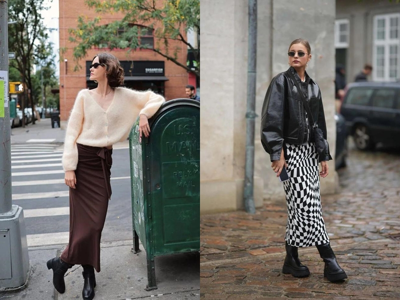 Từ chân váy, áo sơ mi, quần ống rộng... của mùa hè, chị em có thể tận dụng để phối vào mùa đông theo nhiều phong cách.