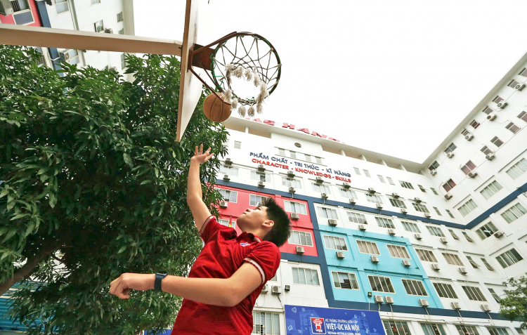 Học sinh một trường liên cấp ở phường Từ Liêm, TP Hà Nội chơi bóng rổ để nâng cao thể chất - ẢNH: BẢO KHANG |