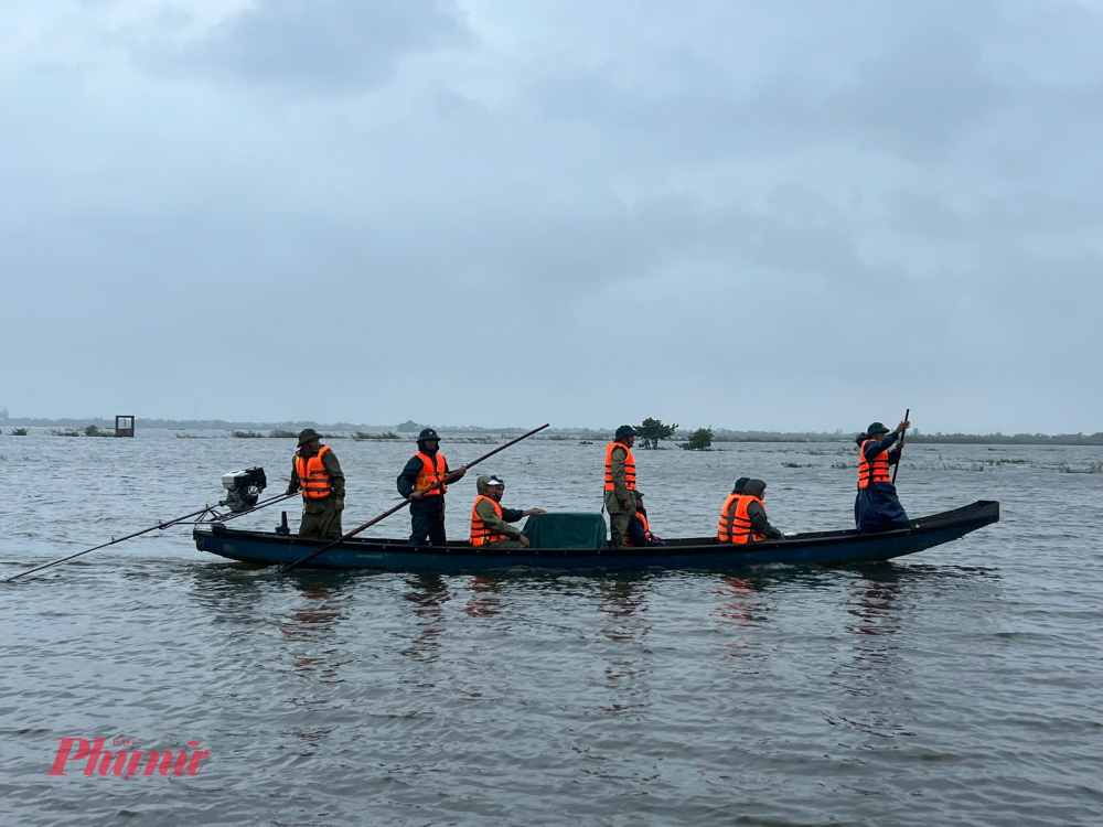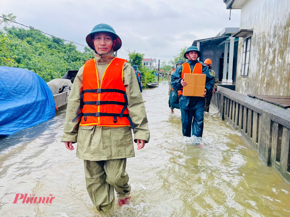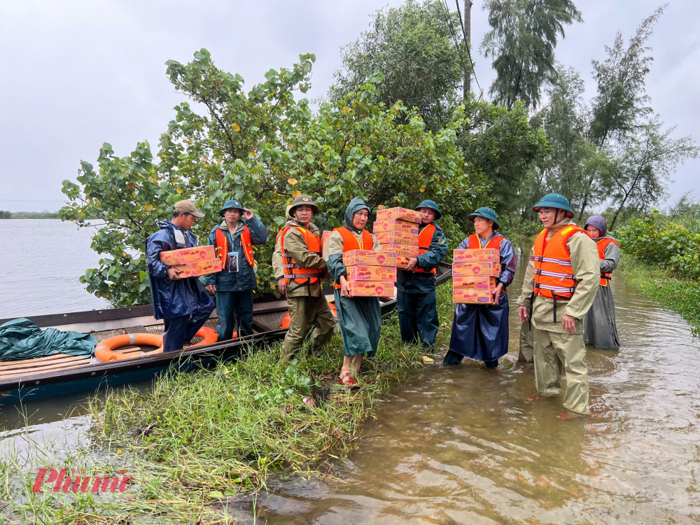 PNO - Mặc dù nước lũ ở đang còn cao, bằng tinh thần trách nhiệm, những chuyến hàng đầu tiên đã được cán bộ phường Hóa Châu trao tận tay người dân vùng lũ.