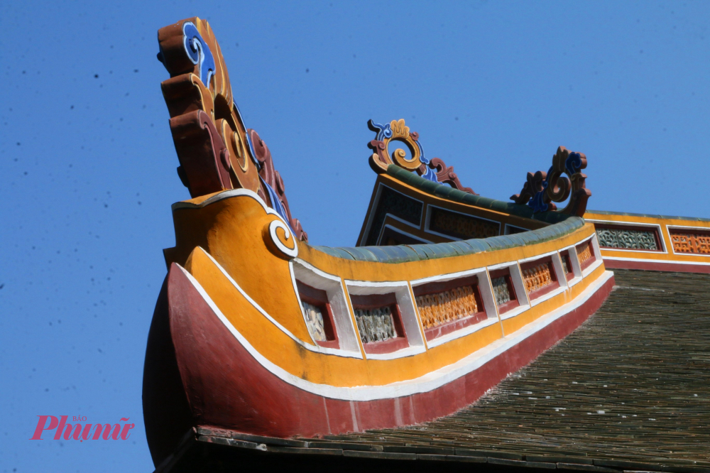 | Hệ mái của công trình được phục hồi, lợp ngói âm dương Hoàng lưu ly; phục hồi bờ nóc, bờ quyết, ô hộc, các con giống bằng pháp lam… |