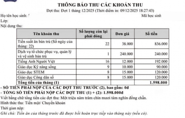 Sau khi được miễn học phí, tổng tiền học và tiền ăn mỗi tháng dao động từ 2–2,5 triệu đồng, thì riêng các môn liên kết đã chiếm gần một nửa.