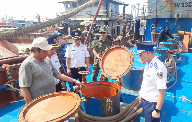 PNO - Ngày 30/12, Bộ Tư lệnh Vùng Cảnh sát biển 3 cho biết, lực lượng chức năng thuộc đơn vị vừa chủ trì phối hợp với Đội 3 - Chi cục Điều tra chống buôn lậu - Cục Hải quan phát hiện phát hiện, bắt giữ tàu vận chuyển hơn 230.000 lít dầu DO không có hóa đơn, chứng từ chứng minh nguồn gốc hợp pháp trên vùng biển Tây Nam.