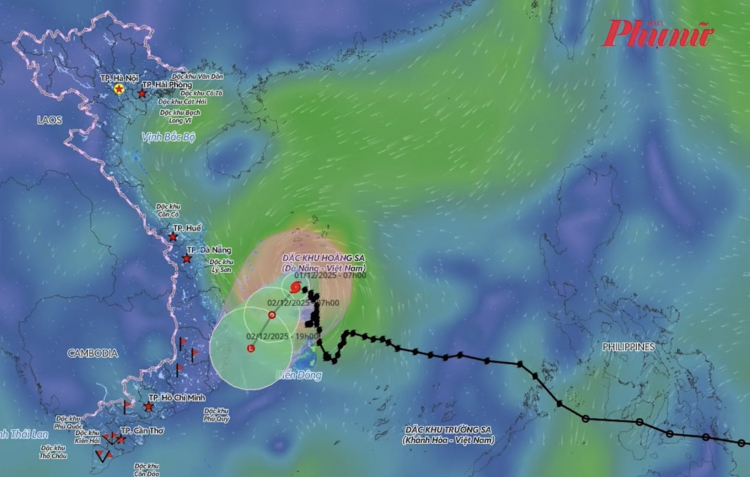 Sáng 1/12, bão số 15 gần như đứng yên trên vùng biển phía Tây Bắc giữa Biển Đông, duy trì sức gió cấp 8, giật cấp 10, gây biển động mạnh và sóng cao 2-6m. Trong 24 giờ tới, bão di chuyển chậm về Tây Nam, suy yếu còn cấp 6, giật cấp 8, tiếp tục ảnh hưởng khu vực từ Gia Lai đến Khánh Hòa trước khi giảm xuống áp thấp nhiệt đới vào ngày 3/12.