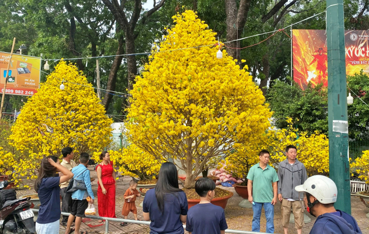 | Những ngày cận Tết Bính Ngọ 2026, chợ hoa xuân tại Công viên Gia Định (phường Hạnh Thông, TPHCM) trở nên nhộn nhịp hơn khi nhiều chậu mai đồng loạt bung nở vàng rực. |