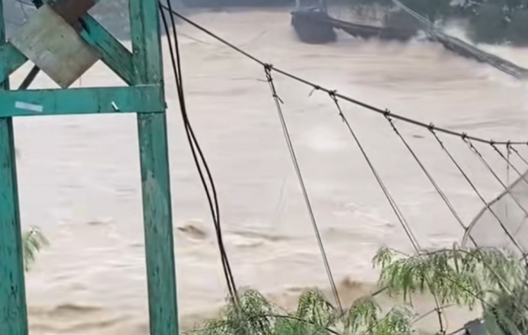Cây cầu treo qua sông tại thác Dray Nur bị lũ cuốn trôi hôm 21/11. Nguyên nhân do mưa lớn khiến nước từ thượng nguồn đổ về. Cây cầu bắc qua sông Sêrêpôk thuộc buôn Kuốp (xã Ea Na, Đắk Lắk) là điểm check in quen thuộc của nhiều du khách.