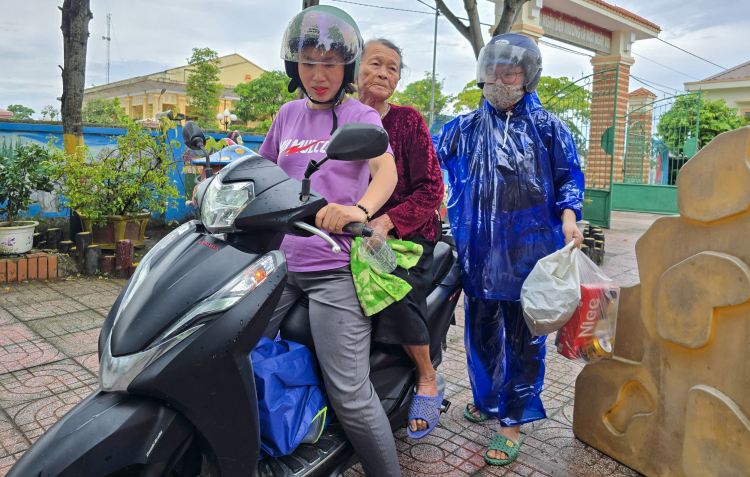 BCH phòng thủ dân sự khu vực 3 - Phú Lộc (TP Huế) hỗ trợ di dời người dân trong vùng bị ngập sâu đến nơi an toàn.
