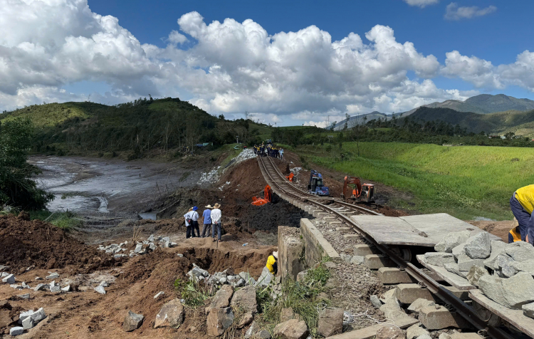 PNO - Ngày 9/11, Tổng công ty Đường sắt Việt Nam huy động hàng trăm công nhân cùng nhiều phương tiện khắc phục sự cố sạt lở hơn 90m thuộc xã Xuân Lãnh (tỉnh Đắk Lắk) do bão số 13 gây ra khiến đường ray như chiếc võng. Tổng công ty quyết tâm hoàn thành cầu tạm và thông tuyến đường sắt Bắc - Nam vào chiều 10/11.