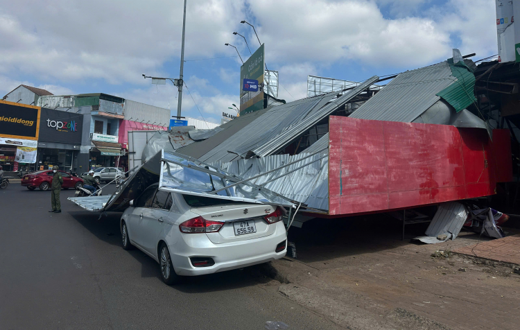 PNO - Tấm bảng hiệu tại tòa nhà Viettel Store bất ngờ đổ sập, khiến 1 người bị thương, hư hỏng nhiều phương tiện ô tô, xe máy.
