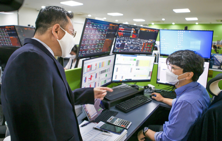 Một phiên thảo luận nhỏ về diễn biến thị trường tại Công ty Chứng khoán KIS Việt Nam - ẢNH: T.H. |