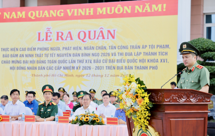 PNO - Ngày 12/12, Công an TPHCM tổ chức lễ ra quân thực hiện cao điểm phòng ngừa, phát hiện, ngăn chặn, tấn công trấn áp tội phạm bảo đảm an ninh trật tự tết Nguyên đán Bính Ngọ 2026.