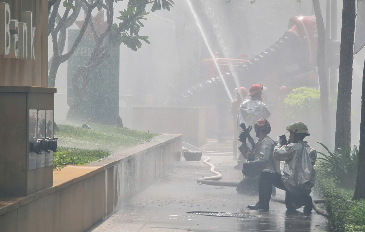 PNO - Sáng 24/10, Phòng Cảnh sát PCCC & CNCH Công an TPHCM diễn tập phòng cháy, chữa cháy tại tòa nhà mPlaza trên đường Lê Duẩn, phường Sài Gòn.