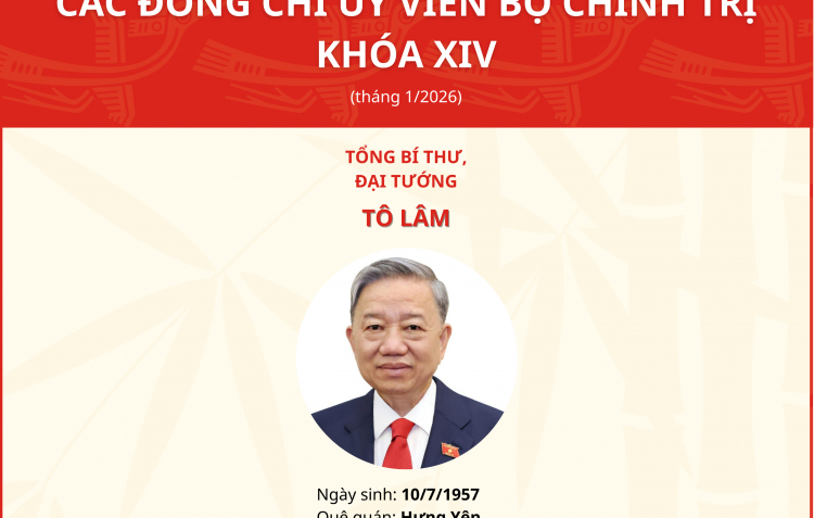 PNO - Chiều 23/1, Danh sách Bộ Chính trị khóa XIV đã được công bố tại phiên bế mạc Đại hội đại biểu toàn quốc lần thứ XIV.