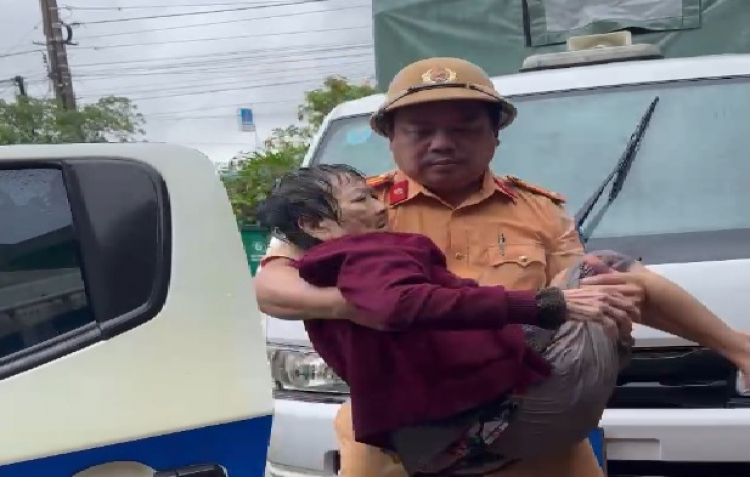 PNO - Sáng 23/11, Phòng Cảnh sát giao thông (CSGT), Công an tỉnh Đắk Lắk cho biết, ngày 22/11, Tổ CSGT Tây Hòa đã cứu được cụ bà 94 tuổi bị ngâm mình trong nước lũ nhiều ngày, đưa đến bệnh viện cấp cứu.