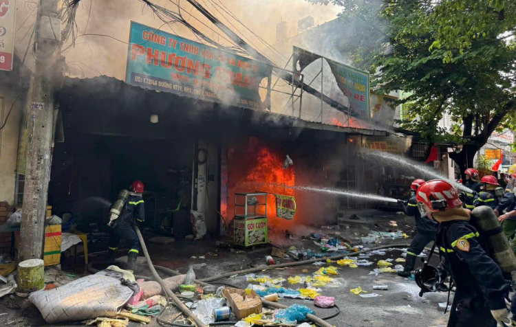 PNO - Trưa 26/3, lực lượng chức năng phường Tân Thới Hiệp, TPHCM đang phối hợp với các đơn vị nghiệp vụ Công an TPHCM điều tra, làm rõ nguyên nhân vụ cháy cửa hàng trên đường Chung Thị Minh.