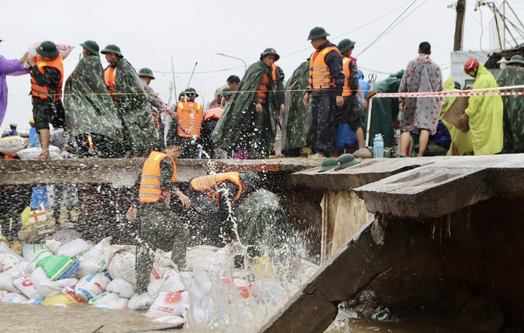 PNO - Tuyến kè biển ở cửa Đại sông Thu Bồn bị sóng đánh vỡ uy hiếp hàng chục hộ dân ở xã Duy Nghĩa; Sư đoàn 315 điều quân gia cố.