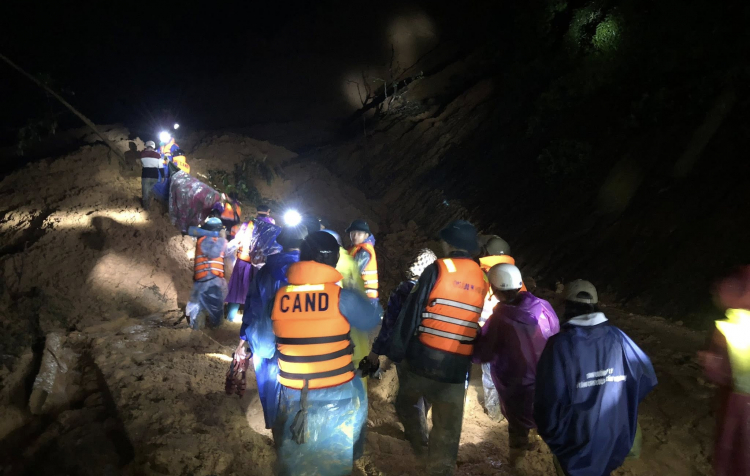Cán bộ, chiến sỹ Lữ đoàn 270 (Quân khu 5) tiếp tục hành quân vượt núi đồi sạt lở vào các thôn bị cô lập của xã Trà Tân (Đà Nẵng).