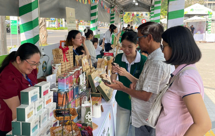 PNO - Khai mạc sáng 29/1 tại Vincom Mega Mall Grand Park, TPHCM, “Phiên chợ Đặc sản bản địa - Tiêu dùng xanh” mang nhiều đặc sản mùa tết như mì gạo chuối xanh, bánh phồng tôm, bánh pía… từ các vùng miền đang thu hút sự quan tâm của người tiêu dùng.