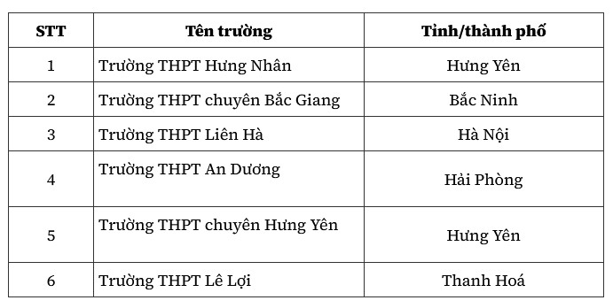 Các trường đạt giải được phân bố rộng khắp, từ đô thị đến miền núi, biên giới, hải đảo và vùng khó khăn như Lào Cai, Cao Bằng, Gia Lai, Đắk Lắk...