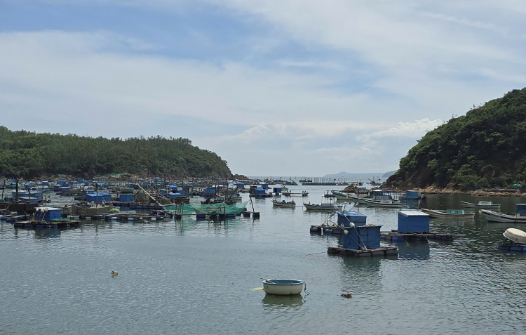 Chiều 4/11, trước diễn biến phức tạp của bão số 13 Kalmaegi, người nuôi tôm ở vịnh Vũng Rô, xã Hòa Xuân, Đắk Lắk gia cố lồng bè nuôi trồng thủy sản.
