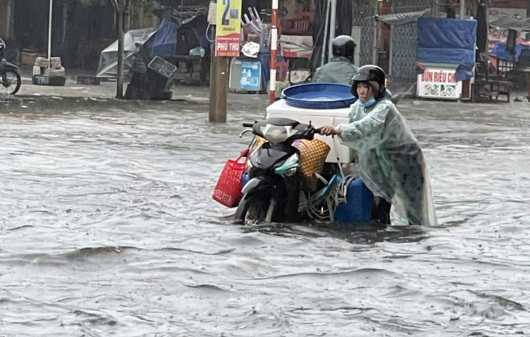 4 người đang di chuyển giữa dòng nước lũ không may bị nước cuốn trôi, lãnh đạo phường Hóa Châu đã sử dụng phương tiện tại chỗ ứng cứu kịp thời.
