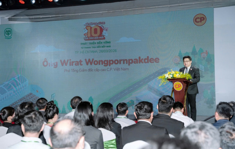 PNO - “10 năm, không chỉ là cột mốc vận hành của nhà máy, mà còn đánh dấu hành trình 10 năm C.P. không ngừng nỗ lực mang đến những giải pháp thực phẩm sáng tạo, bền vững cho gia đình Việt Nam”, ông Wirat Wongpornpakdee - Phó tổng giám đốc cấp cao C.P. Việt Nam chia sẻ tại lễ kỷ niệm Nhà máy C.P. Củ Chi: 10 năm tận tâm đổi mới, phát triển bền vững từ trang trại đến bếp nhà, ngày 26/3.