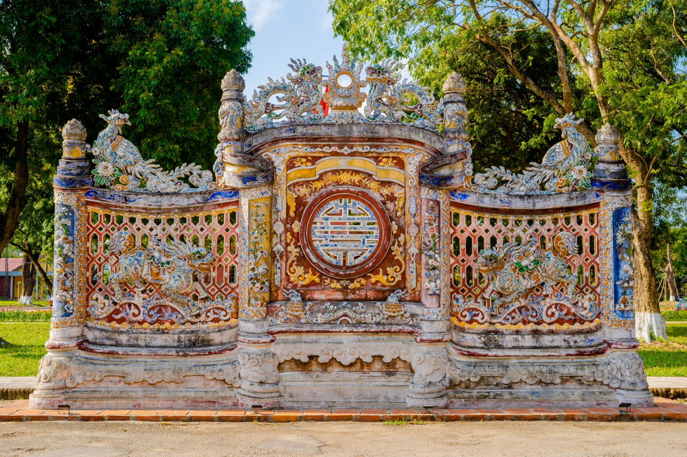 | Đặc biệt bức bình phong Long Mã ở Cơ Mật Viện là một bức bình phong cổ kính, tuyệt đẹp thời triều Nguyễn, trang trí tinh xảo Tứ Linh, chữ Thọ và các biểu tượng hoàng gia, từng bị phá hủy sau 1945 nhưng đã được TTBTDTCĐ Huế phục hồi vào năm 2010, trở thành biểu tượng nghệ thuật, di sản văn hóa và điểm nhấn trong định hướng phát triển Cơ Mật Viện thành không gian sáng tạo di sản, văn hóa, nghệ thuật. |