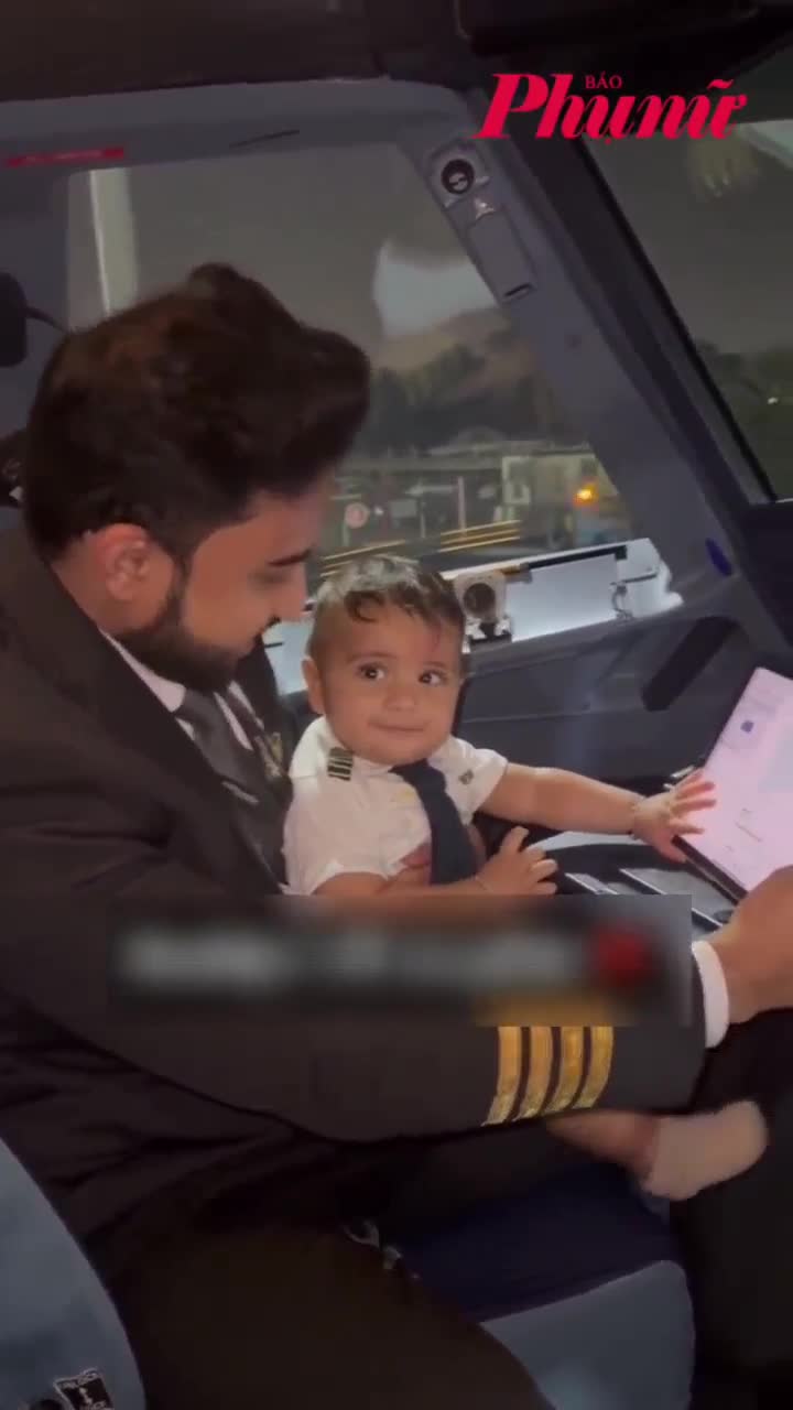 Em bé đi máy bay lần đầu trong đời do chính cha làm phi công