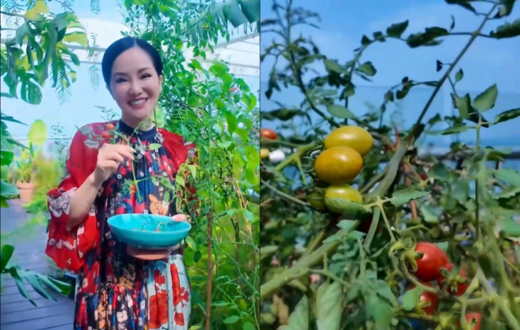 PNO - Trên tầng thượng của một chung cư cao cấp, ca sĩ Hồng Nhung dành một khoảng để trồng cây. Cà chua, dâu tằm… thu hoạch từ vườn cũng được Hồng Nhung bổ sung vào các bữa ăn.